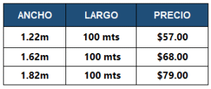 | Ancho | 1.12x100m, 1.22x100m, 1.62x100m, 1.82 mx100 |